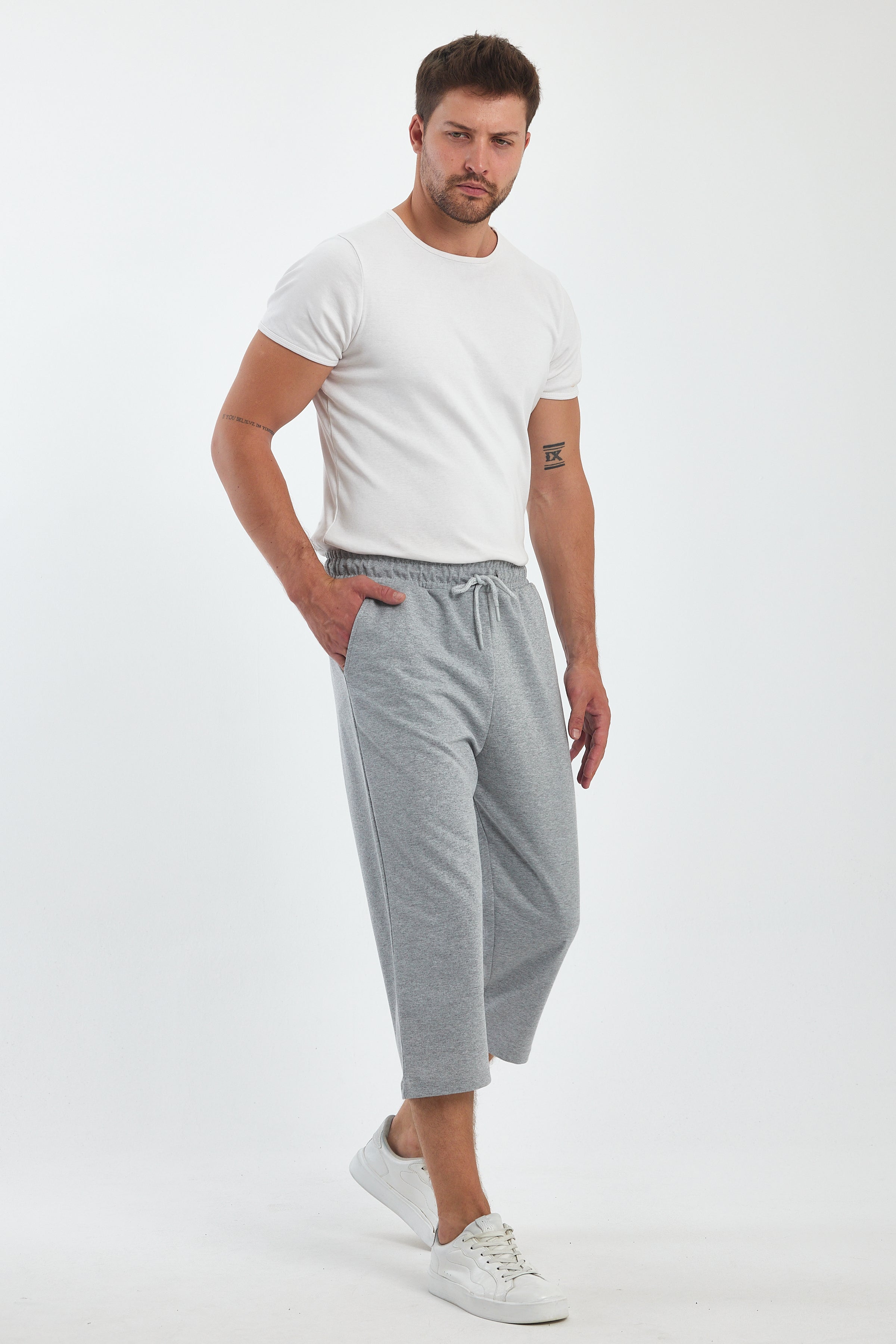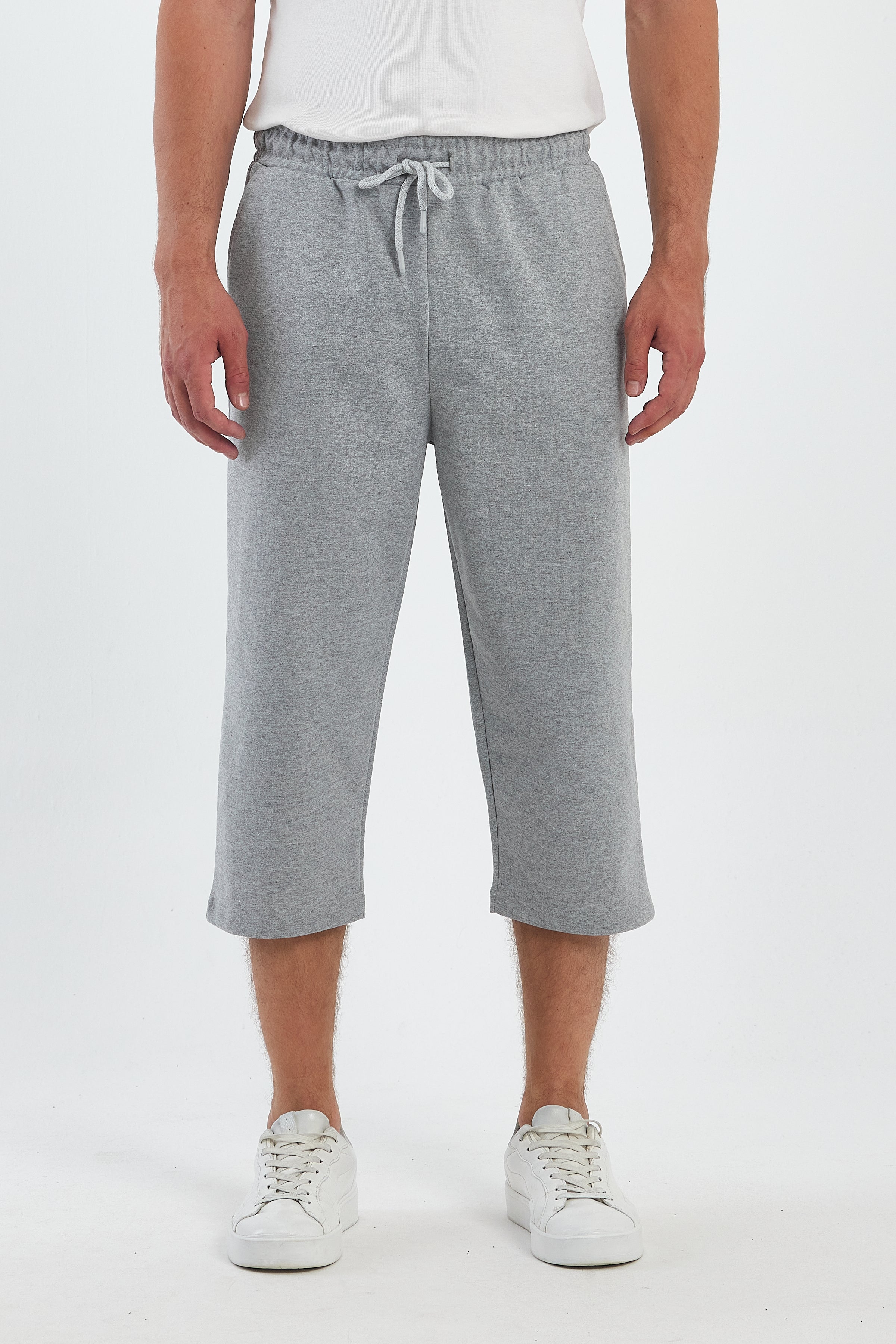 COMEOR Sporthose Herren Kurz – 3/4 Capri Hose Herren - Kurze Hosen Männer Laufshorts Baumwolle Shorts Light Gray
