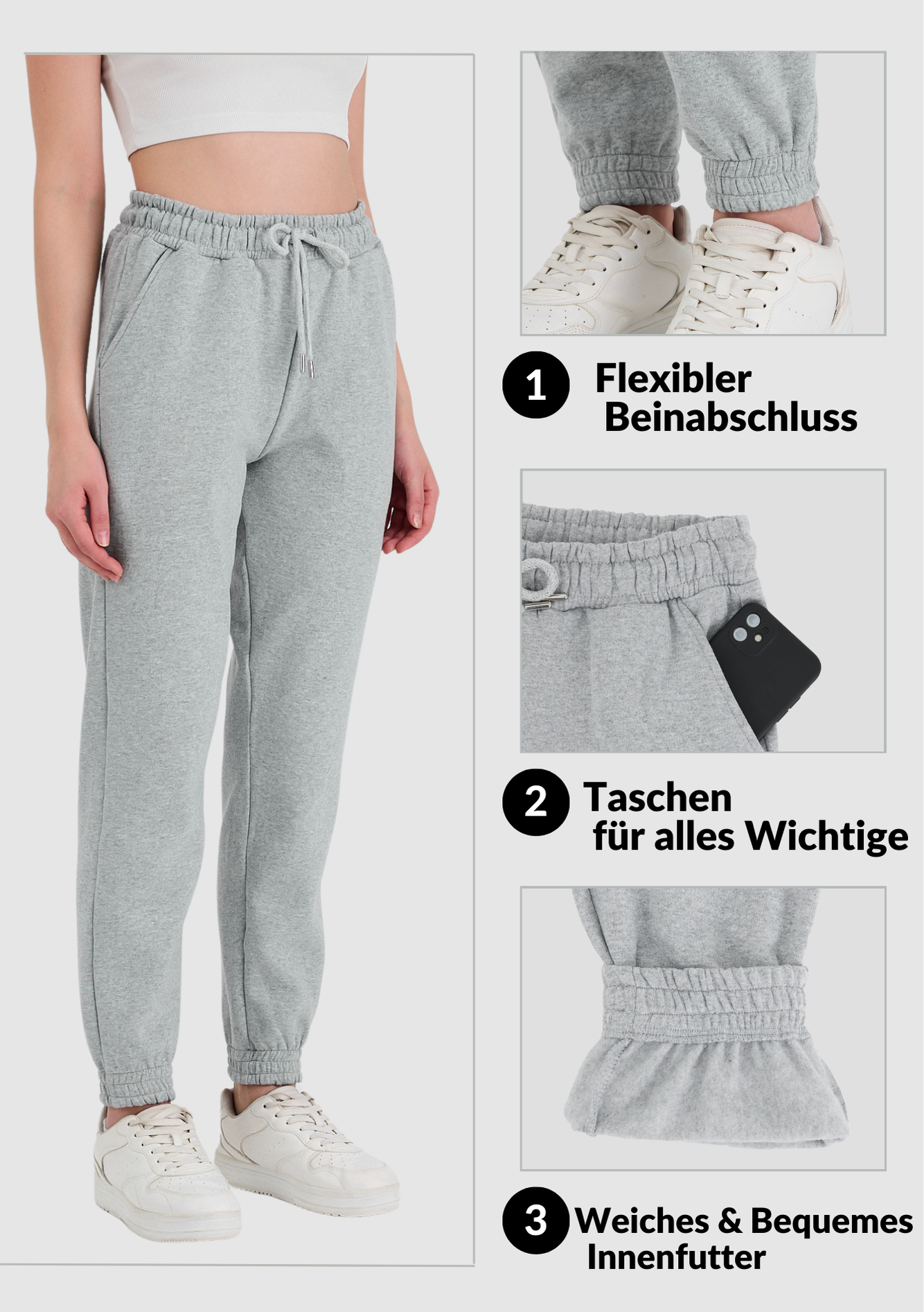 Jogginghose Damen -Baumwolle Warme Sporthose, Freizeithosen, Sweatpants Light Gray